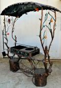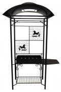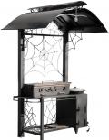 Дополнительно в комплекте: вертел, чугунный казан на 8 л, решетка для гриля, подставка под сковороду, нажигатель для дров, дровница, колчан для шампуров, 2 деревянных разделочных столика, полка для посуды