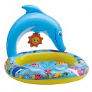 • миниводоемы (высотой не более 17-20 см). Такие бассейны подойдут для самых маленьких детей. Они имеют яркую окраску, часто снабжены тентом или крышей в виде яркого предмета (звездочки, облачка и т.д.). Главное его преимущество — безопасность: надувной бассейн для детей не имеет острых углов, изготовлен из гипоаллергенных материалов.