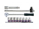Набор состоит из 7 комбинированных трещоточных ключей (8-19 мм).